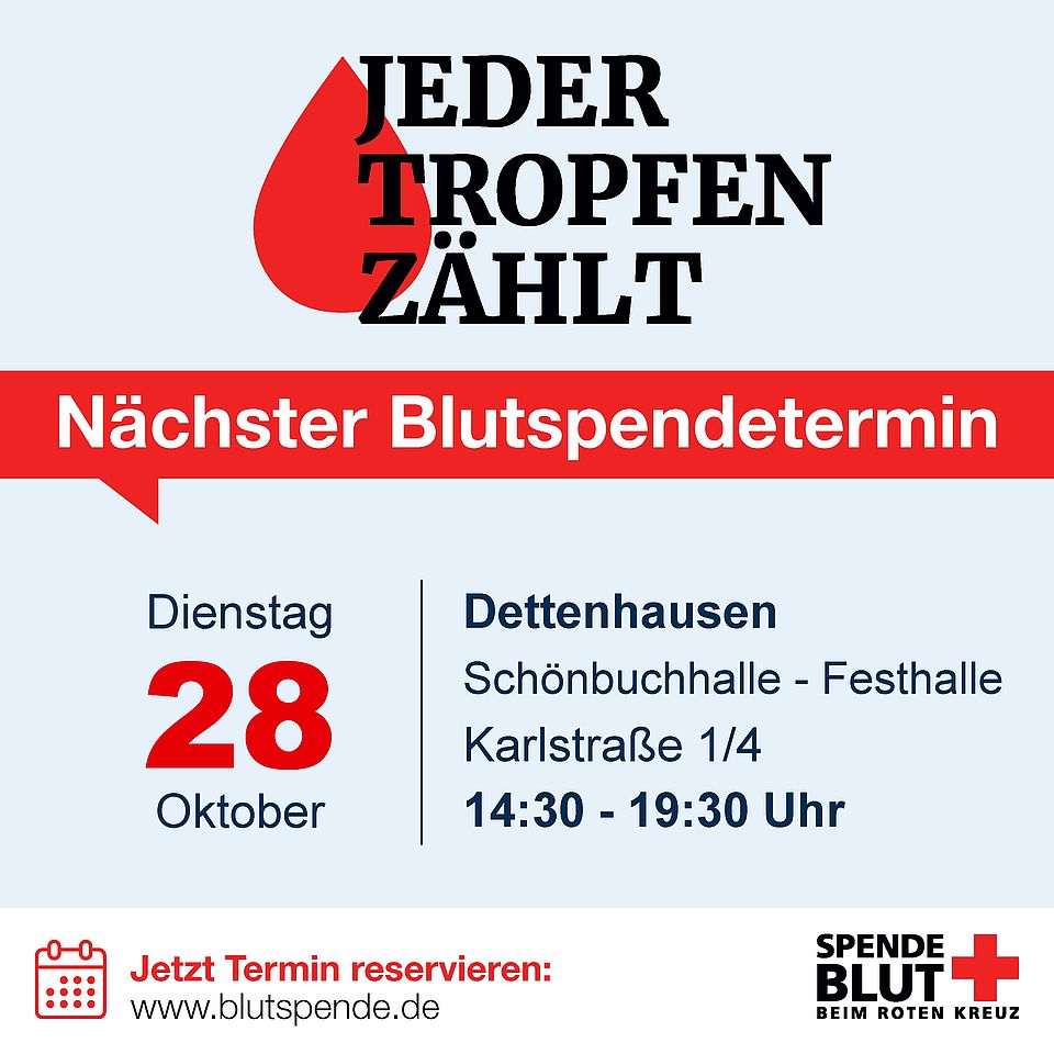 Am 28. Oktober findet in Dettenhausen die nächste Blutspende statt!